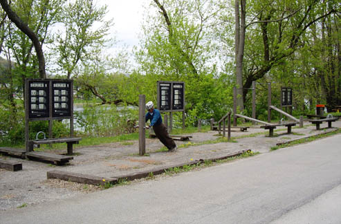 Parcourse at Franklin TrailheadIn western Pennsylvania, parcourses with exercise stations are common features of trails
